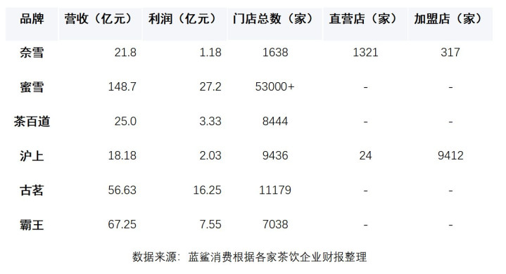 2025年上半年,主要茶饮品牌的营收、利润及门店数对比: